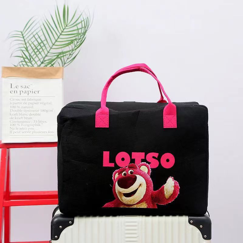Printed Travel Bag-Rose red black strawberry bear